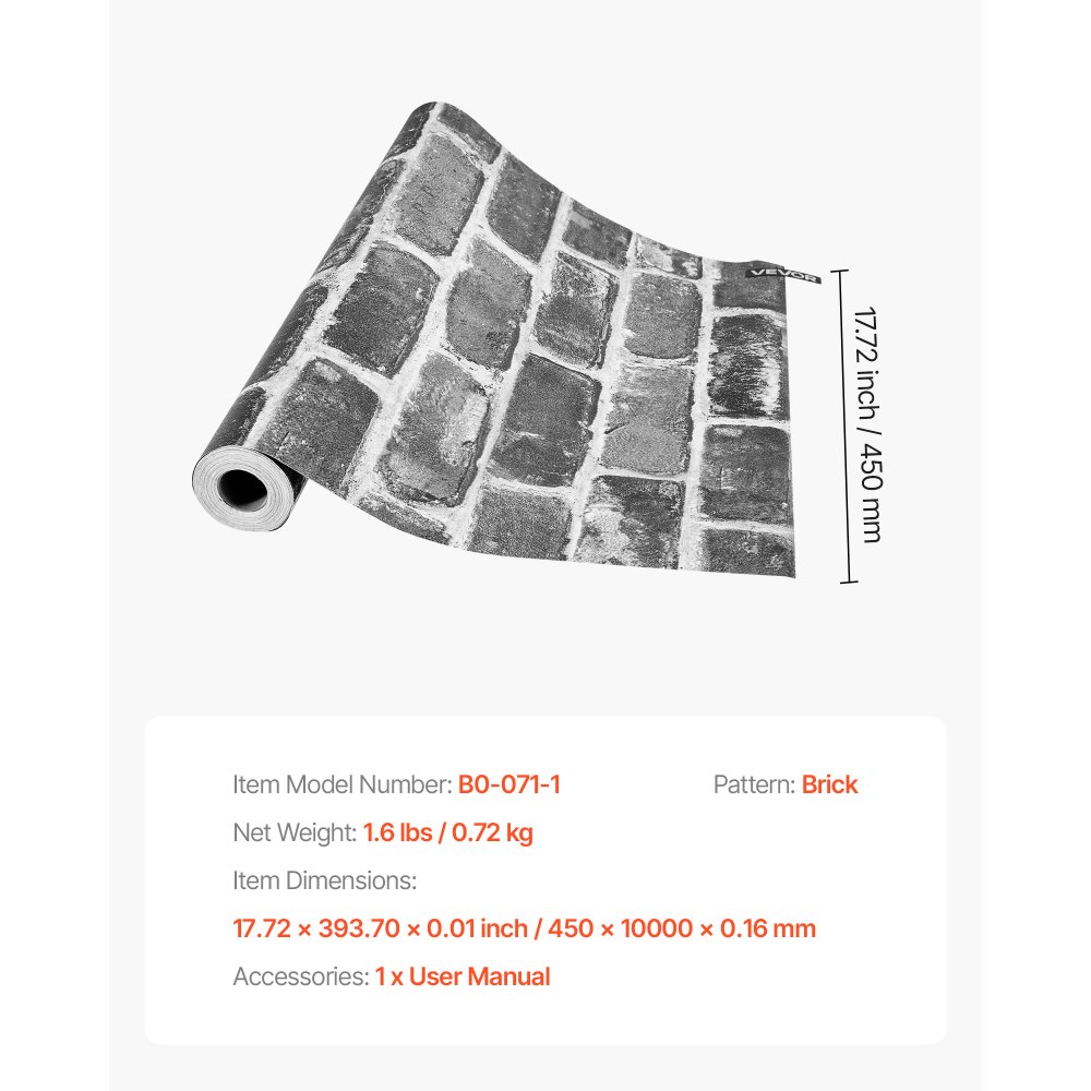 Papel Pintado Autoadhesivo para Pared, Lámina Adhesiva con Efecto Ladrillo Gris, Vinilo Decorativo para Muebles, Dormitorio, Cocina, Oficina, Baño y Escritorio, 450 x 10000 x 0,16 mm, Gris - Material de oficina