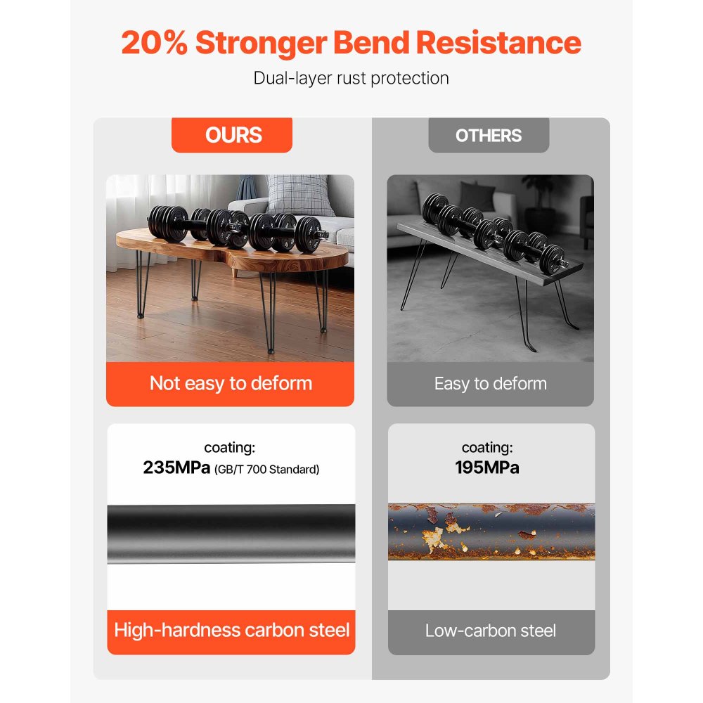 Acero duradero con recubrimiento en polvo: Nuestras patas de escritorio con forma de horquilla adoptan 3 varillas de acero de 3/8'', lo que las hace más estables y resistentes que 2 varillas. Cada pierna puede soportar carga máxima de 220 lbs / 100 kg sin deformación (4 patas fijas hasta 880 lbs de carga). Terminadas con tecnología de recubrimiento en polvo, las patas son brillantes, inoxidables y suaves al tacto. Estabilidad y una apariencia limpia para resistir cualquier cosa.