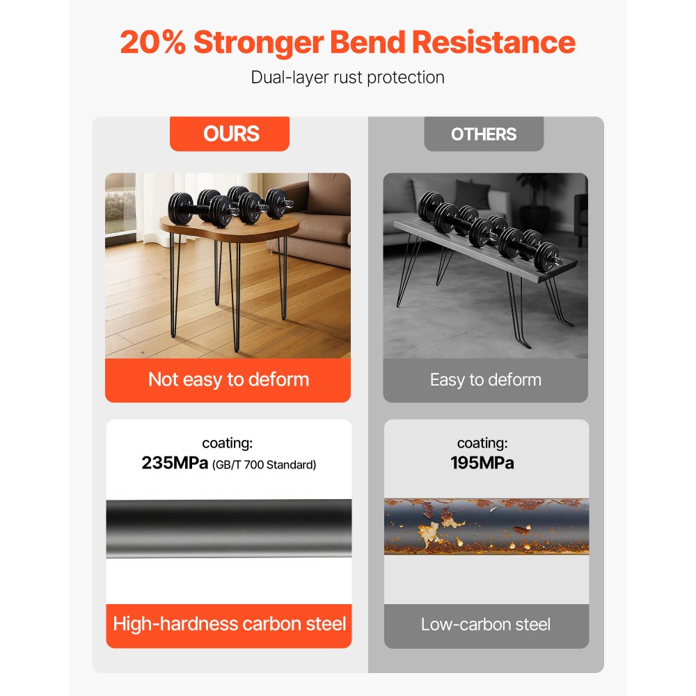 Acero duradero con recubrimiento en polvo: Nuestras patas de escritorio con forma de horquilla adoptan 3 varillas de acero de 3/8'', lo que las hace más estables y resistentes que 2 varillas. Cada pierna puede soportar carga máxima de 220 lbs / 100 kg sin deformación (4 patas fijas hasta 880 lbs de carga). Terminadas con tecnología de recubrimiento en polvo, las patas son brillantes, inoxidables y suaves al tacto. Estabilidad y una apariencia limpia para resistir cualquier cosa.