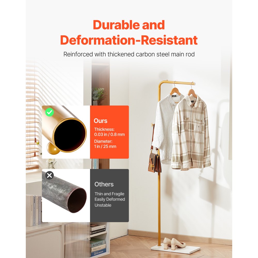 Almacenamiento ordenado y fácil acceso: Nuestro perchero independiente cuenta con 3 ganchos redondos escalonados, lo que garantiza una organización ordenada y un fácil acceso a cada artículo. Además, su superficie lisa y refinada, sin rebabas, protege tu ropa de arañazos y daños