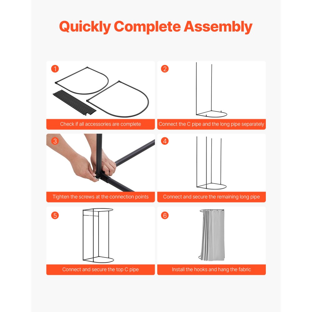 Probador Semicircular de Privacidad con Cortinas Gruesas Poliéster, con Cortina Sombra y Gancho, para Boutiques, Centros Comerciales, Sastrerías, 99 x 94 x 199 cm, Negro y Blanco Grisáceo - Material de oficina