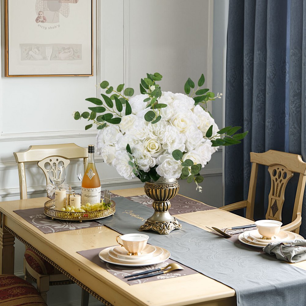 Listo para exhibir: Cada juego de flores para centros de mesa incluye 10 bolas de flores artificiales de media esfera con bases estables. Colóquelas al instante en mesas, jarrones o soportes sin necesidad de herramientas. NOTA: Puede haber ligeras variaciones de color debido a la iluminación de la fotografía o la visualización en pantalla