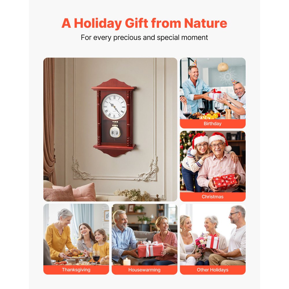 Regalo navideño: Nuestro reloj de pared de péndulo, un regalo de la naturaleza, presenta un diseño elegante y una excelente artesanía, ideal para celebrar momentos especiales. Ya sea para cumpleaños, Navidad, Acción de Gracias o inauguraciones, es la forma ideal de expresar tus más sinceros deseos