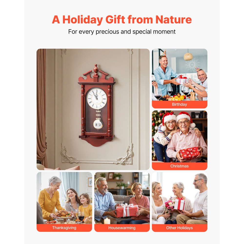 Regalo navideño: Nuestro reloj de pared de péndulo, un regalo de la naturaleza, presenta un diseño elegante y una excelente artesanía, ideal para celebrar momentos especiales. Ya sea para cumpleaños, Navidad, Acción de Gracias o inauguraciones, es la forma ideal de expresar tus más sinceros deseos