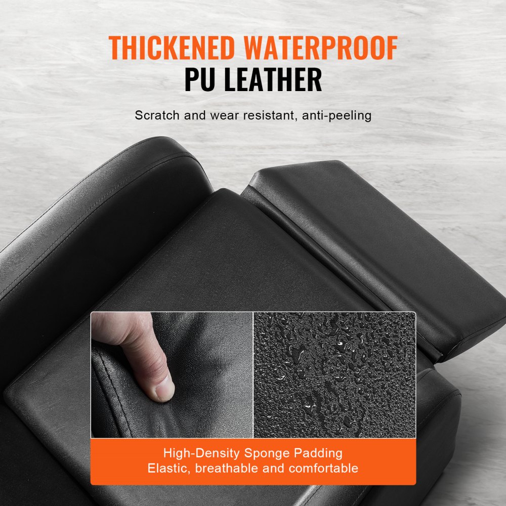 MATERIAL DE CALIDAD PARA UNA COMODIDAD SUPERIOR: Hecho de cuero PU grueso, el asiento de la silla de peluquería es impermeable, suave al tacto y resistente a los arañazos. Combinado con un acolchado de esponja de alta densidad, proporciona una amortiguación y resistencia excepcionales, evitando la deformación y garantizando el mayor confort.