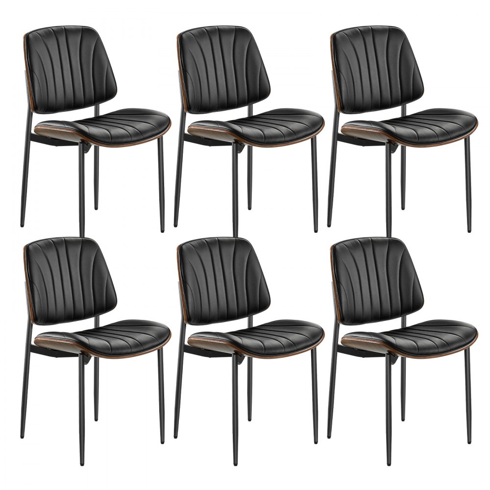 Sillas de Comedor 6 Piezas Silla Decorativa de Cuero PU con Patas de Metal Asiento con Cojín Grueso Capacidad de Carga de 158,76 kg Altura del Asiento de 500 mm para Sala, Oficina, Negro - Material de oficina