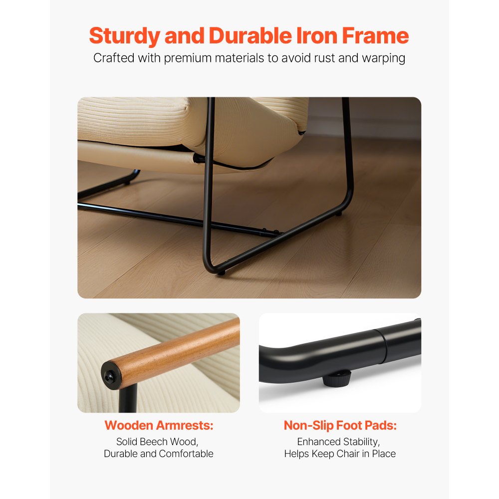Estructura robusta: Este moderno sillón reclinable cuenta con una elegante y robusta estructura de hierro y soporta hasta 135 kg. Sus patas antideslizantes aumentan la estabilidad y protegen el suelo de arañazos