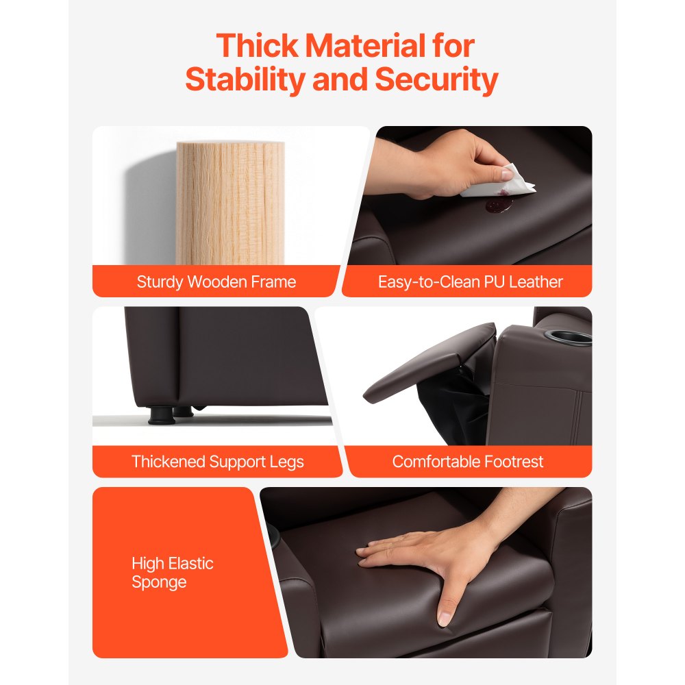 Sillón Reclinable Infantil con Portavasos Respaldo Ajustable 101°-121° Sofá Reclinable de Piel Sintética Fácil de Limpiar Carga de 40 kg para Sala de Estudio, Guardería, Sala de Juegos, Marrón - Material de oficina