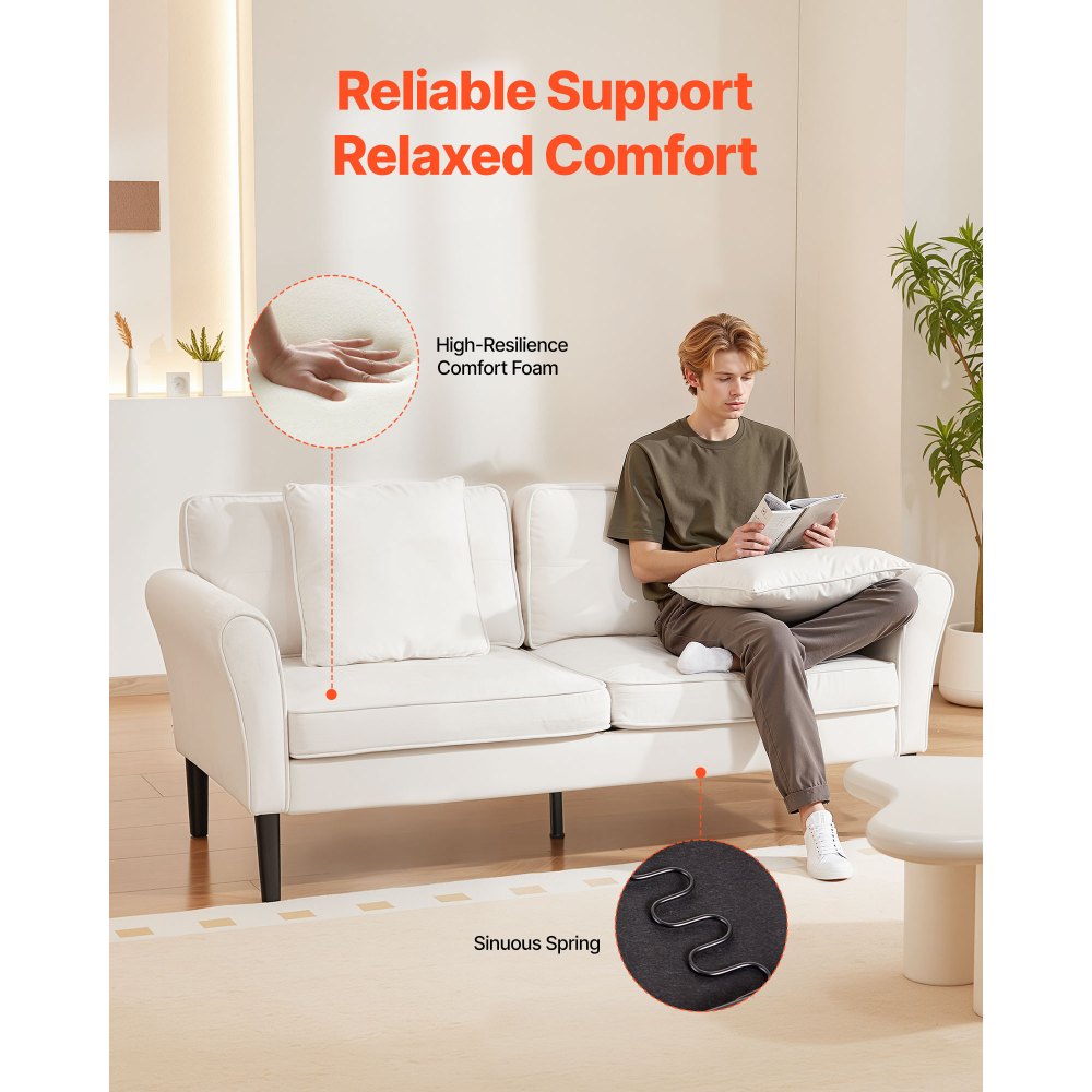 Comodidad para la vida real: Este sofá de dos plazas ofrece una comodidad suave y confortable con una durabilidad práctica para el día a día. Los cojines de espuma de alta resiliencia equilibran la suavidad y el soporte, mientras que el diseño antihundimiento garantiza comodidad y forma duraderas