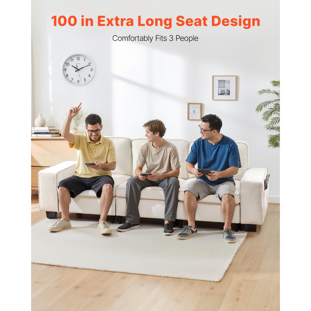 Asientos extralargos: Este sofá de 3 plazas de 2540 mm de largo puede acomodar cómodamente a 3 personas sin sentirse apretado. Ya sea para reuniones familiares o para recibir amigos, ofrece un amplio espacio para relajarse