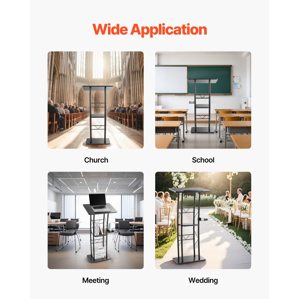 Versátil para cualquier entorno: Este soporte de podio es ideal para aulas, bodas, reuniones, discursos y más. Su diseño portátil y estilo neutro se integran en cualquier espacio, lo que lo convierte en una opción confiable para la enseñanza, la oratoria o la organización de eventos