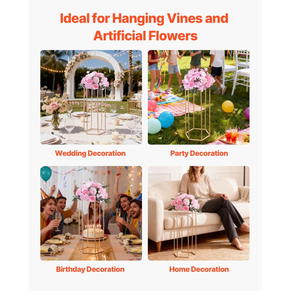 Soporte Floral para Bodas, 10 uds, Laminado Acrílico, Chapado en Oro Francés, Estante Hexagonal Cúbico para Exhibición de Flores en Bodas, Fiestas, Cumpleaños y Hogar, 290 x 250 x 600 mm - Material de oficina