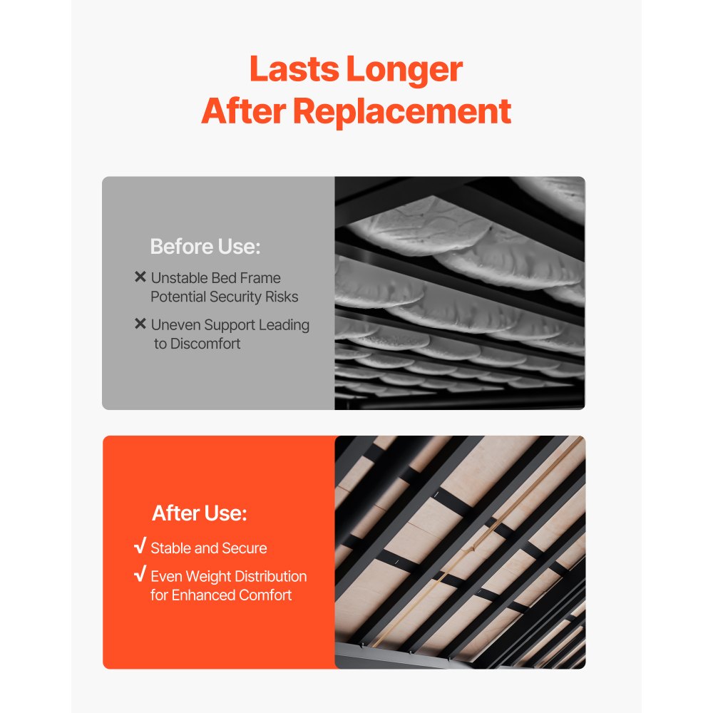 Material premium: Fabricado con contrachapado de pino de alta calidad, con un grosor de 10 mm. Este material no se rompe ni se desmorona y proporciona un soporte firme para su colchón, garantizando una experiencia confiable