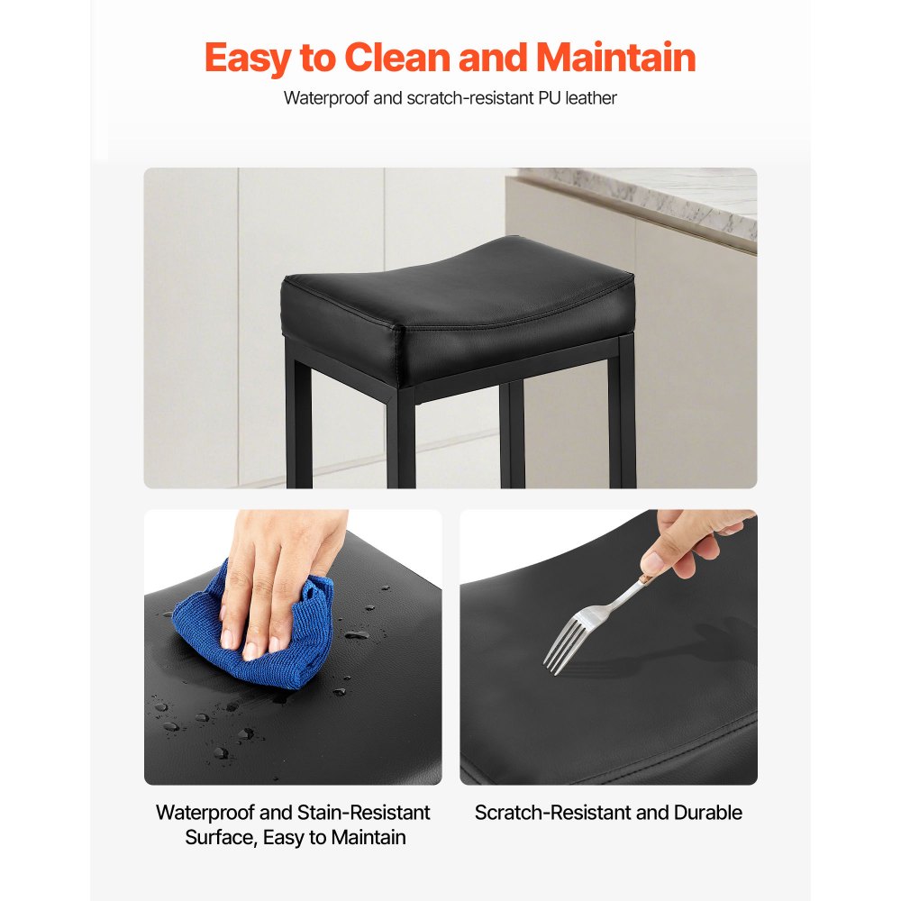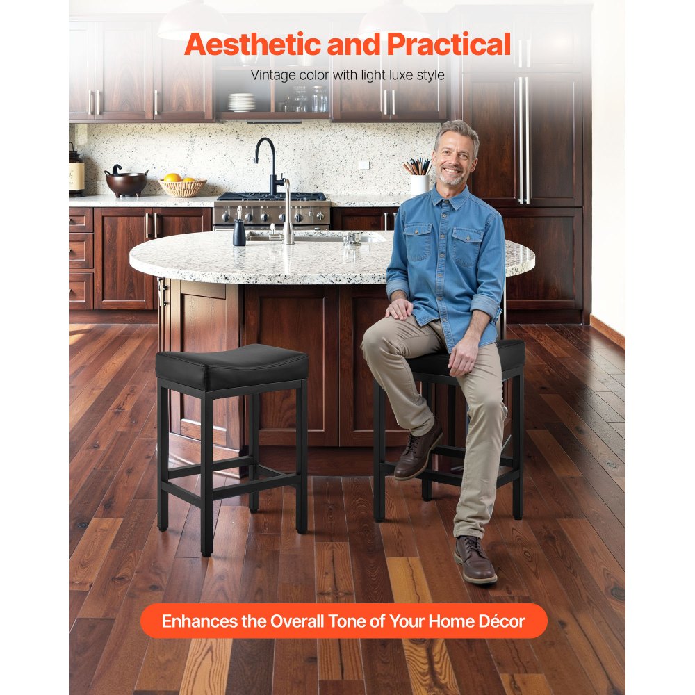 Conjunto práctico: El conjunto incluye dos taburetes de bar de 450 x 340 x 645 mm y una altura de asiento de 625 mm. Este taburete de bar es ideal para hogares de dos personas o cocinas abiertas y se puede usar fácilmente entre comidas, reuniones sociales y actividades de oficina