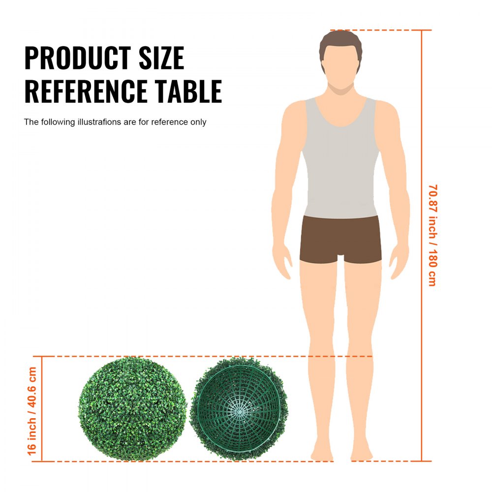 Instalación rápida: 2 piezas de bolas de topiario vienen en 4 mitades, y las dos partes se pueden unir fácilmente con un broche y fijar de forma segura en su lugar con bridas adicionales. Luego, colóquelo en una maceta cuadrada o redonda con una abertura de 11" a 15" / 28 a 38 cm para hacerlo más sofisticado para la decoración interior y exterior.