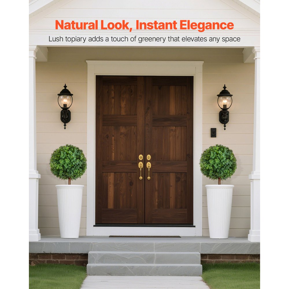 Topiario Artificial de Boj con Estaca, Planta Decorativa, para Porche, Exterior e Interior, Patio, Jardín, Balcón y Patio Trasero, Resistente a la Intemperie, 400 x 400 x 686 mm, 2 uds,