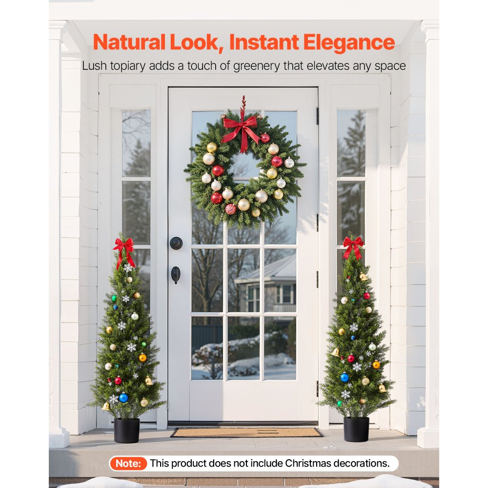 Altura ideal de 121,9 cm: Con 121,9 cm de altura, estos cedros topiarios artificiales destacan sin sobrecargar la decoración. Ideales para enmarcar puertas, realzar patios o añadir vegetación a espacios habitables