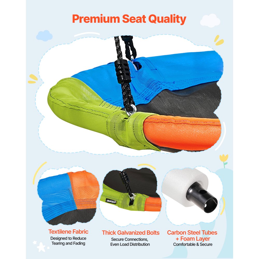 Asiento amplio: Este columpio de jardín para niños incluye un asiento tipo nido de 100 cm, que ofrece un amplio espacio para sentarse o recostarse. Su diseño espacioso mejora la comodidad durante el juego y se adapta a las actividades al aire libre de los niños