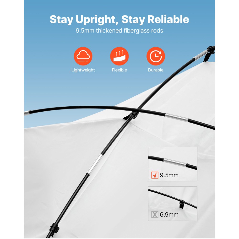 Construcción robusta: Equipada con postes de fibra de vidrio de alta resistencia de 9,5 mm, ganchos resistentes al viento y clavos pulidos, la carpa de pintura se mantiene firme en exteriores. La tela Oxford es repelente al agua y ofrece una protección fiable para sus proyectos de pintura