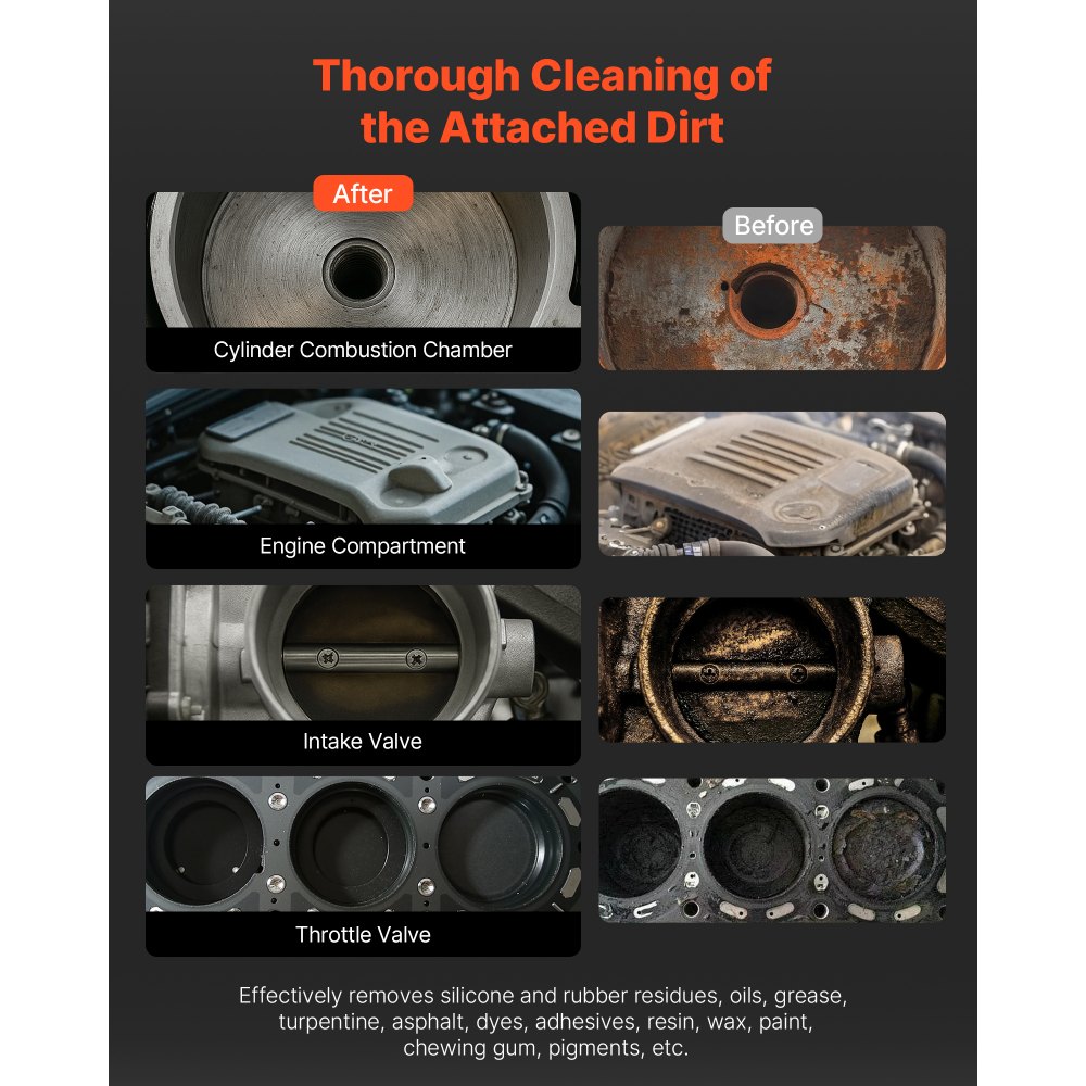 Amplias aplicaciones: Esta máquina de limpieza con hielo seco es ideal para eliminar depósitos difíciles y descascarillados, residuos de silicona y caucho, aceite, grasa, suciedad, tinta, resina, adhesivos, cera, pintura, chicle y más. Se utiliza ampliamente en diversas industrias, especialmente para limpiar la acumulación de carbonilla en compartimentos de motor, cámaras de combustión, válvulas de admisión y válvulas de mariposa