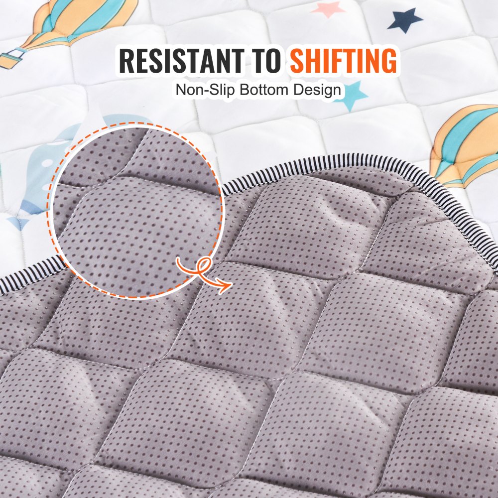 Diseño antideslizante: la parte posterior del tapete de juego de actividades antideslizante para gatear está cubierta con puntos antideslizantes de silicona para evitar que el tapete se resbale y se mueva, lo que garantiza la estabilidad y la seguridad mientras su bebé juega.