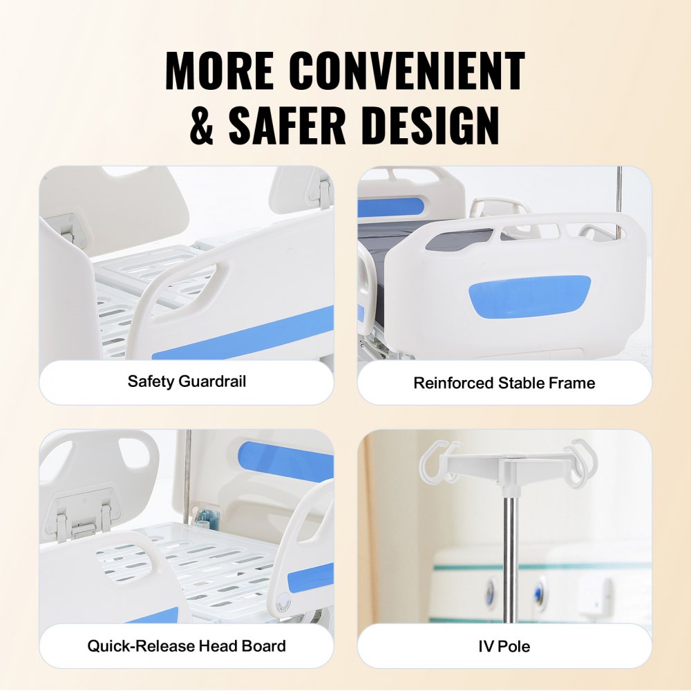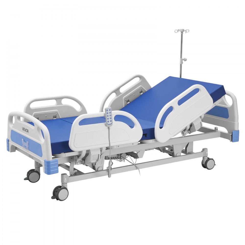 Cama de hospital eléctrica completa de 5 funciones premium VEVOR, cama médica eléctrica para UCI con Trendelenburg y Trendelenburg inverso, ruedas con bloqueo de 5 pulgadas, soporte para suero para uso hospitalario en el hogar, carga de 550 libras - Salud y bienestar