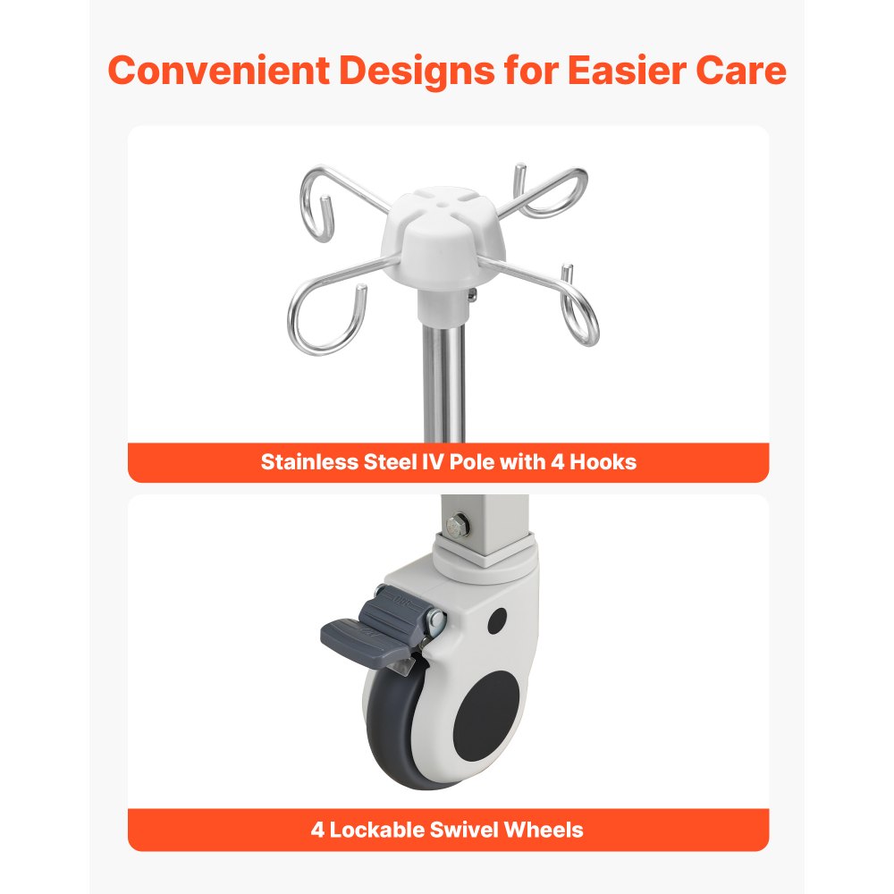 Fácil movilidad y bloqueo seguro: Equipada con cuatro ruedas giratorias con bloqueo, esta cama médica se mueve con suavidad sobre diferentes superficies. Los frenos de bloqueo mantienen la cama firmemente en su lugar durante el descanso o el cuidado, para una mayor estabilidad