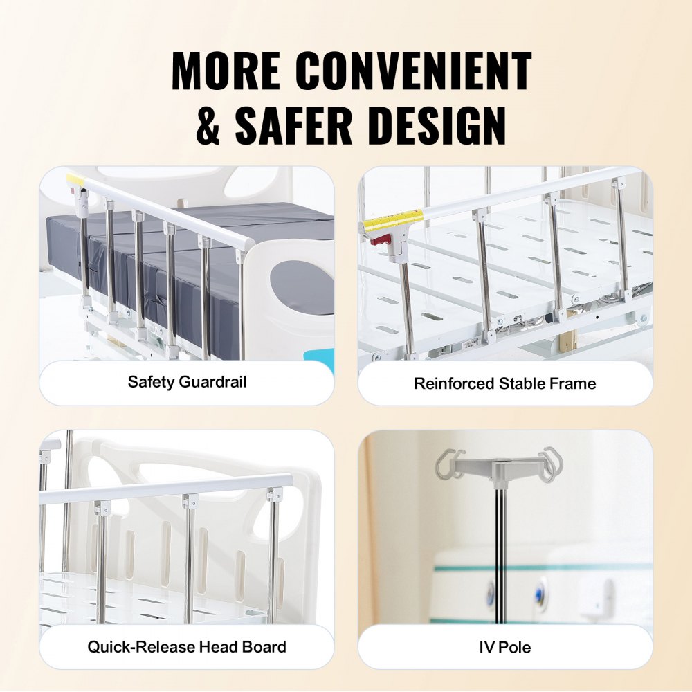 Cama de hospital eléctrica de 3 funciones de primera calidad de VEVOR, cama médica eléctrica para UCI con colchón y soporte para suero, controlador de mano y ruedas de bloqueo de 5 pulgadas para uso en el hospital doméstico, carga de 440 libras - Salud y bienestar