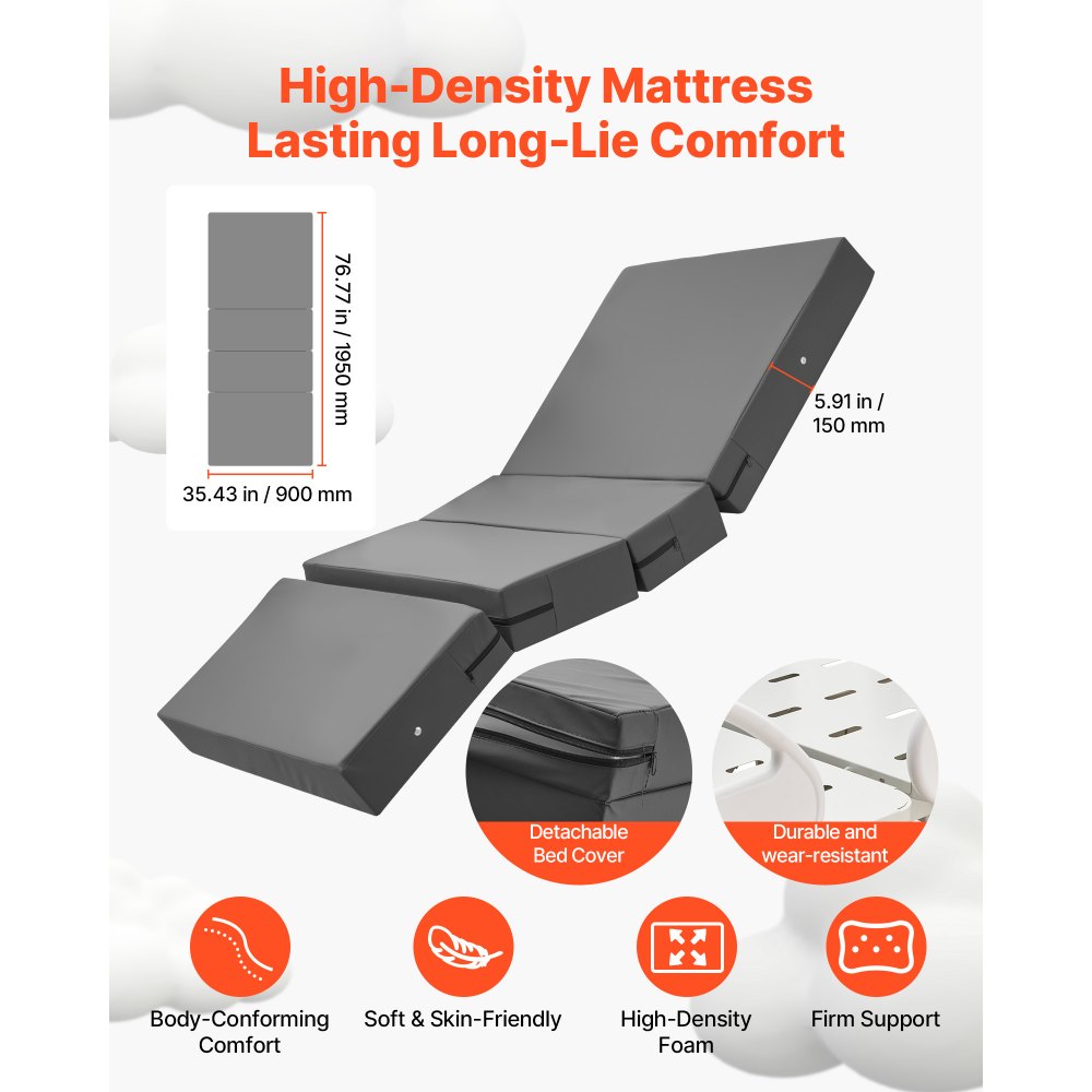 Colchón de alta calidad: Viene con un colchón de espuma de alta densidad de 15 cm que distribuye uniformemente la presión corporal para reducir la incomodidad de largos períodos de descanso, brindando un excelente soporte y una comodidad que se adapta al cuerpo (altura de la barandilla al colchón: 200 mm)