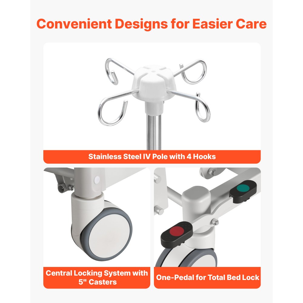 Cama de Hospital Eléctrica de 5 Funciones, con Silla Cardíaca Función de RCP y Trendelenburg, Sistema de Cierre Centralizado con Ruedas para Hospitalización en Easa, Capacidad de 250 kg - Salud y bienestar