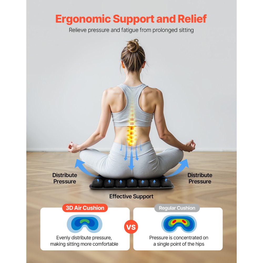 Soporte y alivio de presión: Diseñado con 56 celdas de aire independientes, el cojín de asiento inflable brinda un excelente soporte para el coxis, las caderas, la zona lumbar y la espalda, distribuyendo uniformemente la presión para una mayor comodidad durante largas sesiones sentadas