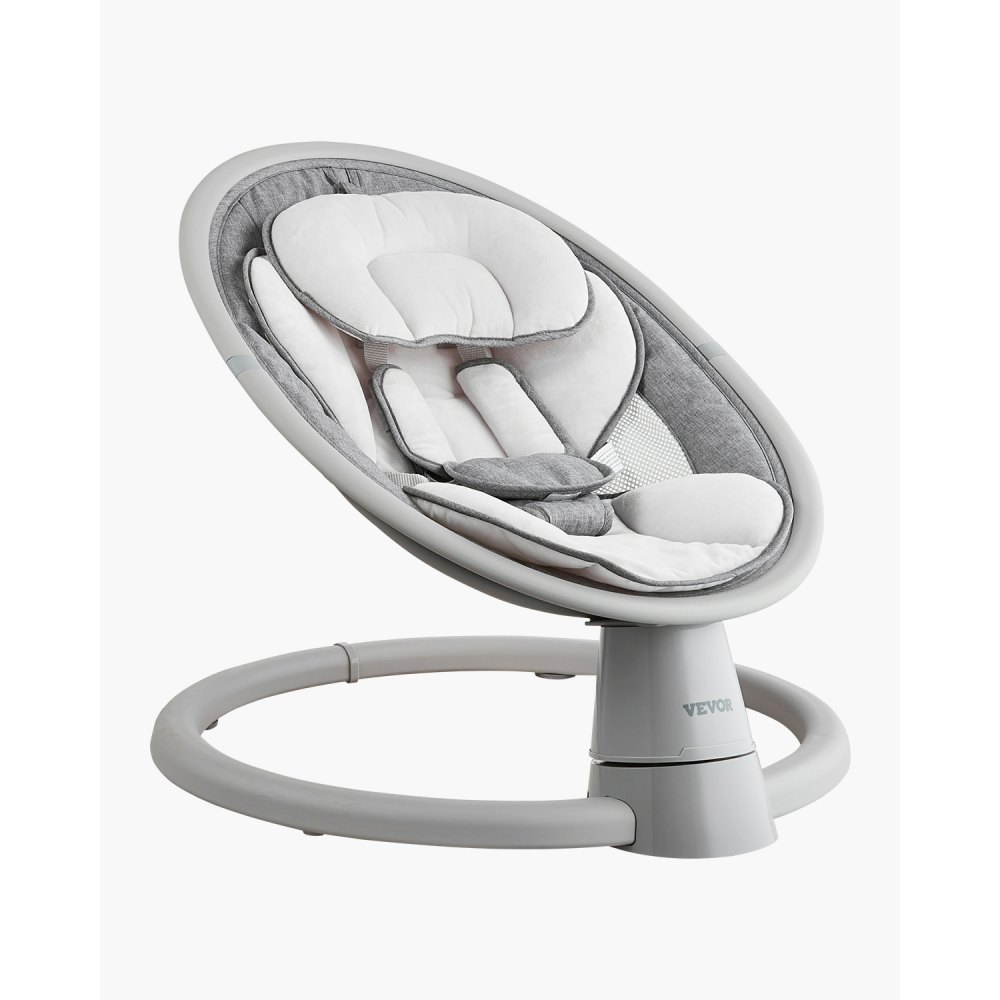 La seguridad es lo primero, la diversión es eterna: Nuestra mecedora para bebés cuenta con una base de aluminio circular de una sola pieza para una mayor estabilidad y un bloqueo del ángulo del asiento para mayor seguridad. El arnés de 5 puntos mantiene a tu bebé seguro, mientras que las hombreras ajustables ofrecen mayor comodidad