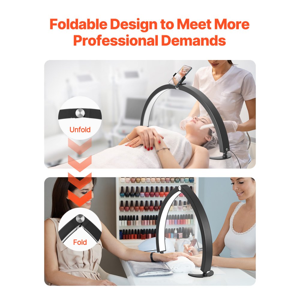 Lámpara Arqueada de Escritorio para Uñas, 40 W Lámpara LED en Forma de Media Luna con Soporte para Teléfono, Brillo y Temperatura de Color Ajustables, para Belleza, Extensiones de Pestañas - Salud y bienestar