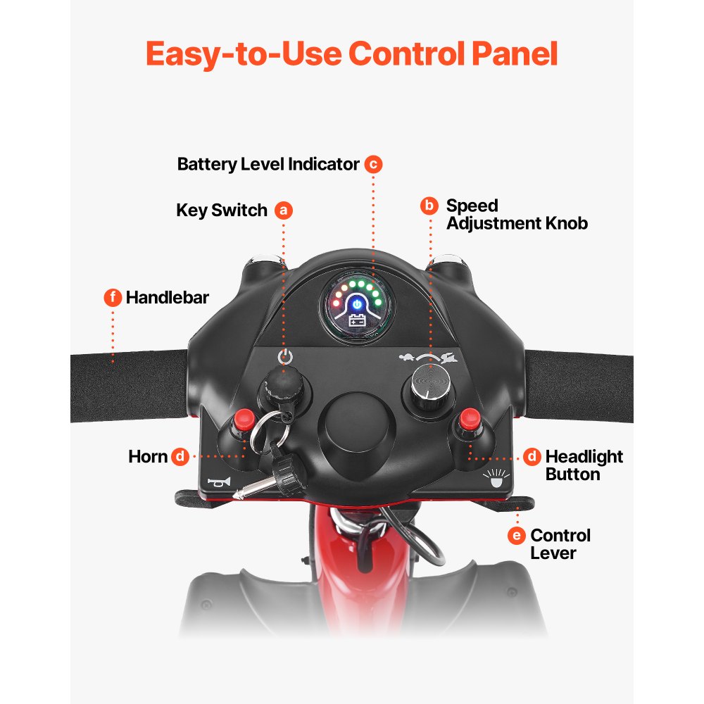 Movilidad y estabilidad mejoradas: El scooter de movilidad de 3 ruedas cuenta con un marco de acero al carbono y soporta hasta 120 kg. Ofrece un soporte fiable y una mejor movilidad para personas mayores, adultos y personas con movilidad reducida