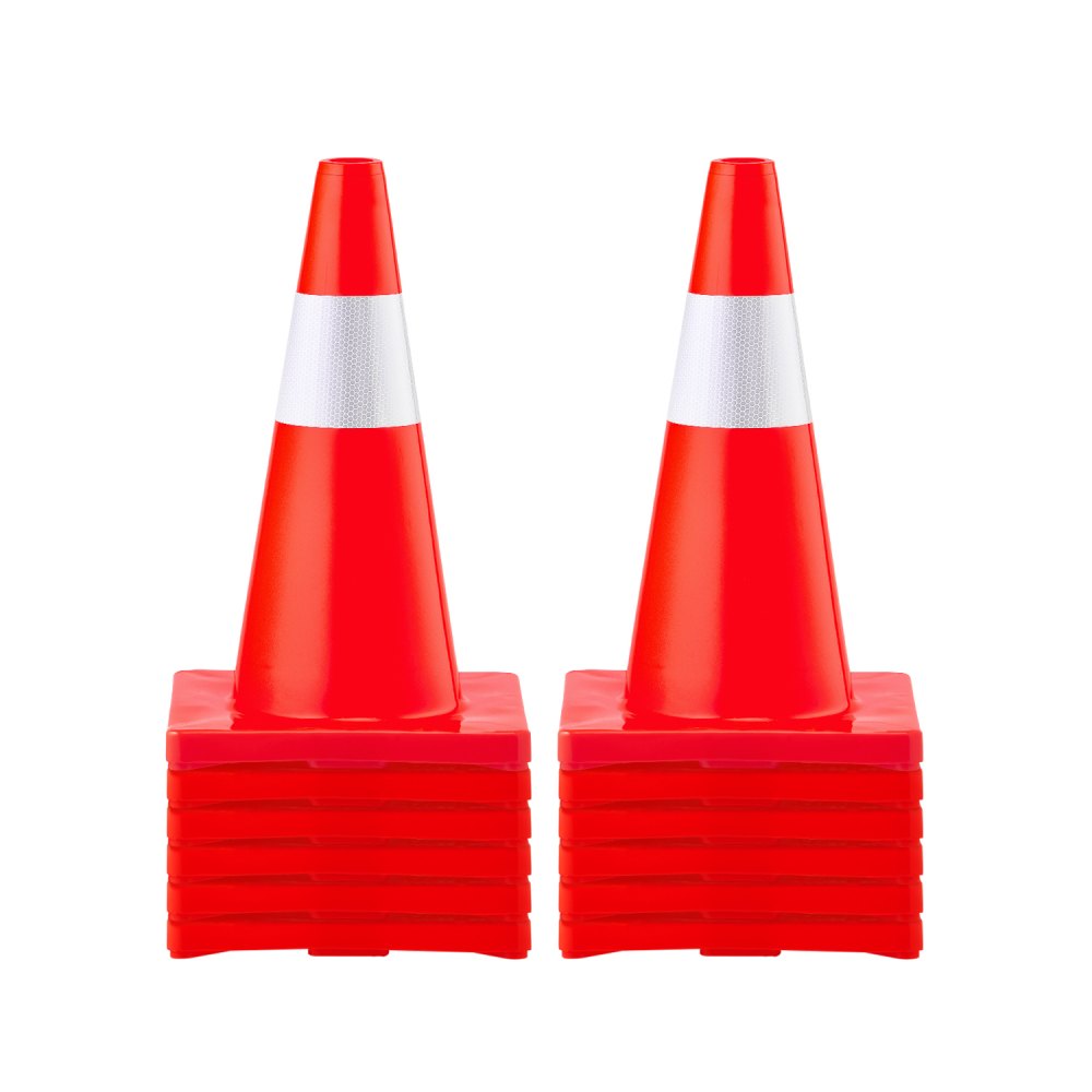Cono de Tráfico 12 Piezas 45,7 cm Pedestal de Obra de PVC Cono de Seguridad con Base Pesada para Demarcación de Estacionamiento de Emergencia en Estacionamiento Carretera - Seguridad