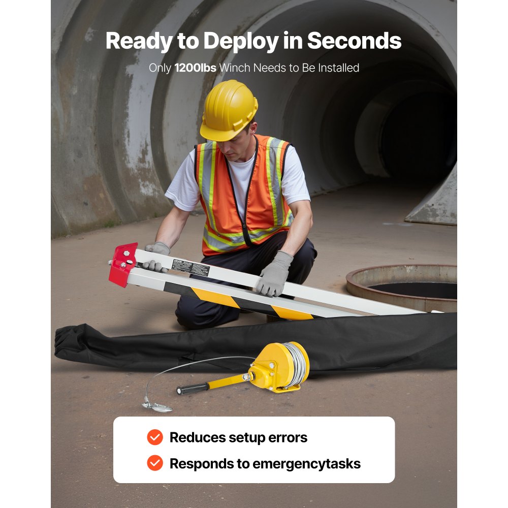 Kit de Trípode de Rescate para Espacios Confinados, con Cabrestante de 544 kg, Patas Ajustables de 1,25 m, Cable de 30 m, Protección Anticaídas de 10 m, Altura de Trabajo de 1,34 a 2,15 m - Seguridad