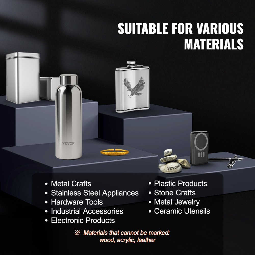 Amplia compatibilidad: nuestra máquina de marcado de fibra es compatible con sistemas macOS y Windows (7/8/10/11) y con varios formatos de archivo, incluidos BMP, JPG, JPEG y GIF. Puede marcar los patrones que desee en la mayoría de los metales, plásticos y cerámicas.