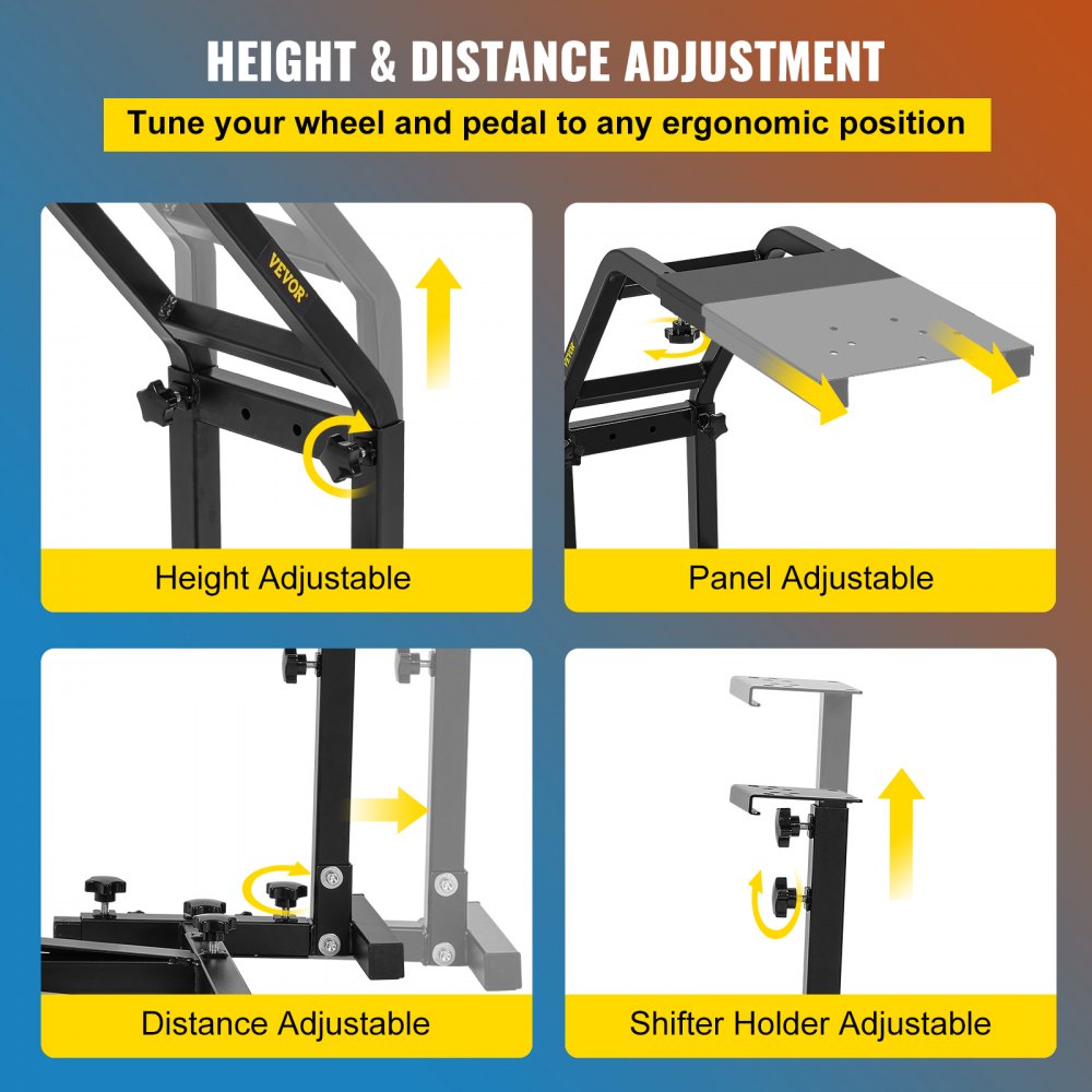 Totalmente ajustable: El soporte del volante es completamente ajustable en altura (rangos de 520-680 mm), lo que brinda la mejor experiencia de manejo a jugadores de diferentes tamaños. Puede girar las perillas para ajustar la rueda y la palanca de cambios en cualquier posición ergonómica, lo que aumenta drásticamente la comodidad y la flexibilidad.