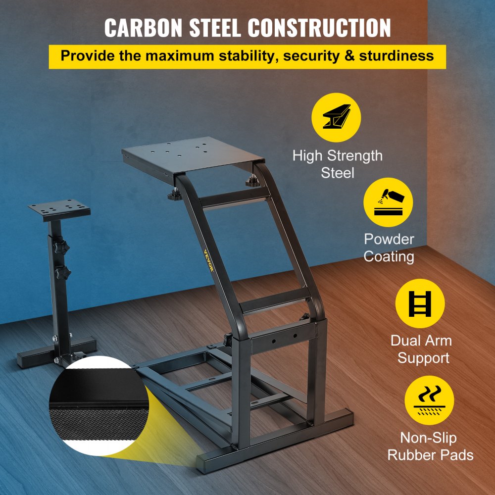 Fácil de montar: Montar este soporte para volante de carreras es muy sencillo, y los no profesionales también pueden completarlo en unos minutos. Solo necesita ajustar las piezas a la posición y altura requeridas y apretar los tornillos. Una instalación tan simple le permite ingresar al juego sin esperar rápidamente.