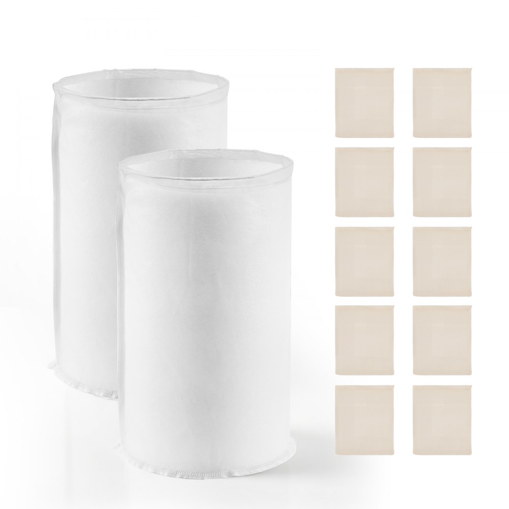Bolsas de Cerveza con 2 Bolsas de Nailon para Granos y 10 Bolsas de Algodón y Lino para Lúpulo, Fáciles de Limpiar, Reutilizables y de Malla Ultrafina, para Nuestra Cervecera Automática