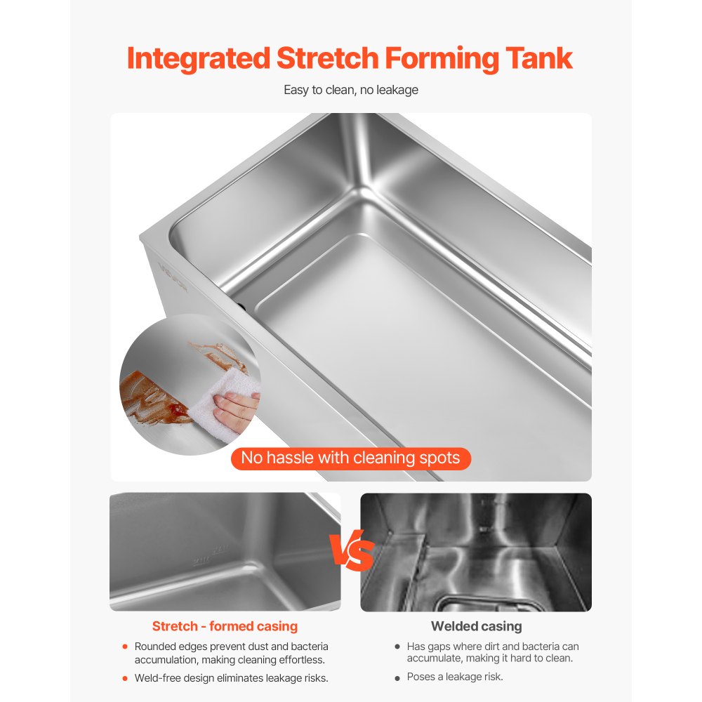 Construcción robusta de acero inoxidable: este calentador de alimentos está diseñado para durar, con una construcción robusta de acero inoxidable que puede soportar un uso constante y es fácil de limpiar y mantener. El recipiente tiene una pared engrosada(0,03"/0,8 mm de espesor) que proporciona una mayor solidez y tiene un sello de agua seguro.