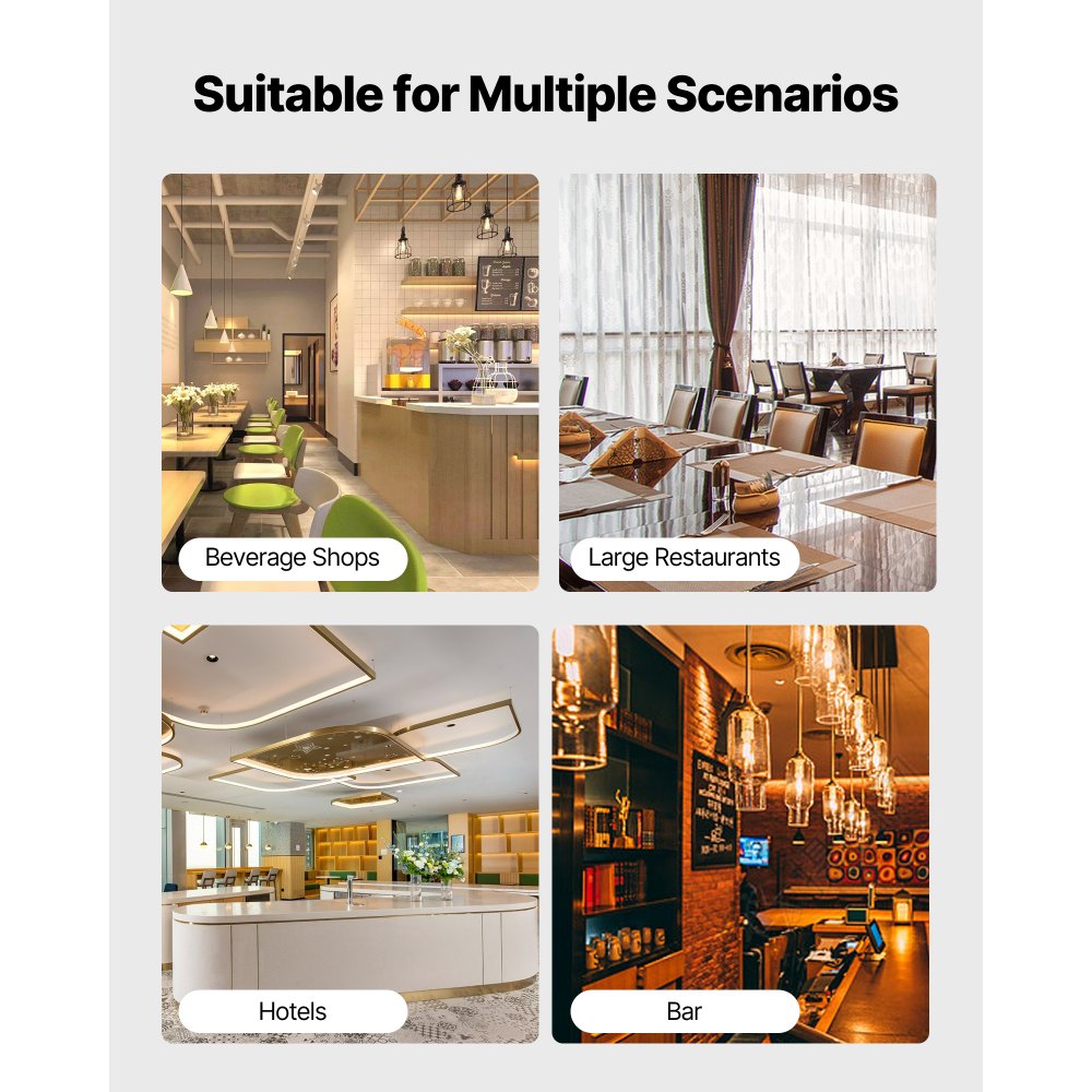 Características adicionales: El depósito de hielo cuenta con una puerta amortiguadora para evitar lesiones y reducir el ruido y la vibración. Ofrece una gran capacidad de hielo, lo que lo hace ideal para cocinas, restaurantes, bares, hoteles y tiendas de bebidas