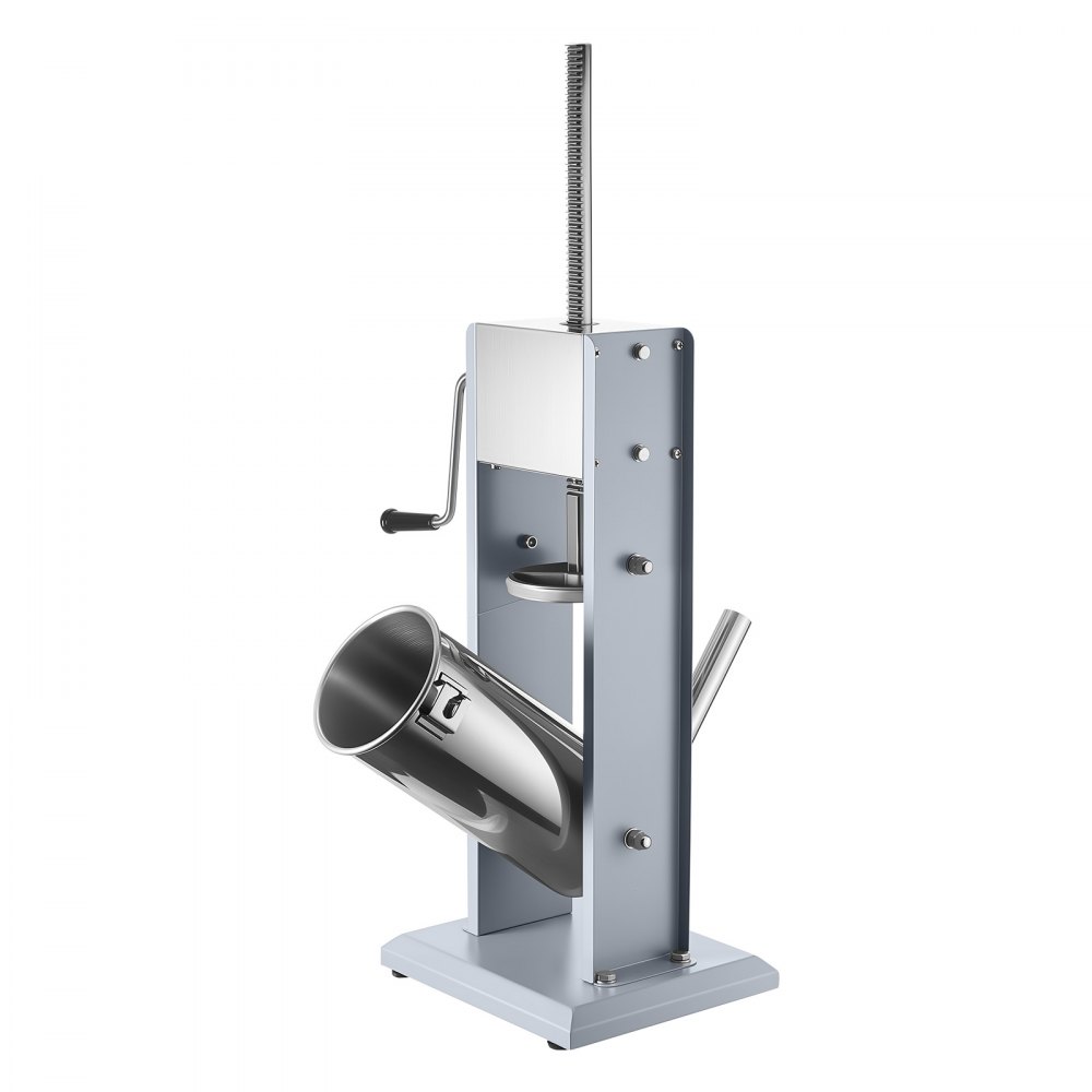 Gran capacidad: El barril inclinable de esta embutidora tiene capacidad para hasta 5 L de carne. Ideal para producir grandes cantidades a la vez, reduce la necesidad de recargas constantes. El barril, los tubos, el armazón y la base están fabricados en acero inoxidable para una larga duración y resistencia a la oxidación