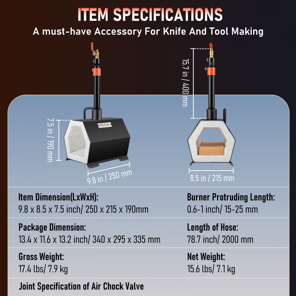 Forja de Propano de Gas 250 x 215 x 190 mm Forja de Cuchillos de Propano Horno de Forja Hexágono con 1 Quemador, Alta Compatibilidad, Impresionante Aislamiento y Protección para Herreros - Tecnología