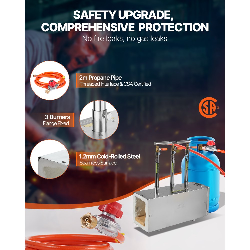Fragua de Gas Propano Portátil, de Forma Cuadrada, con 3 Quemadores, 1427 °C, de Acero Inoxidable 201 Resistente a la Corrosión, Horno de Fusión para Forja de Metales, 510 x 190 x 540 mm - Tecnología
