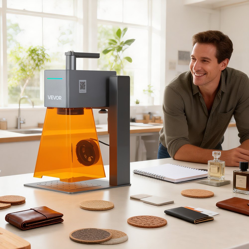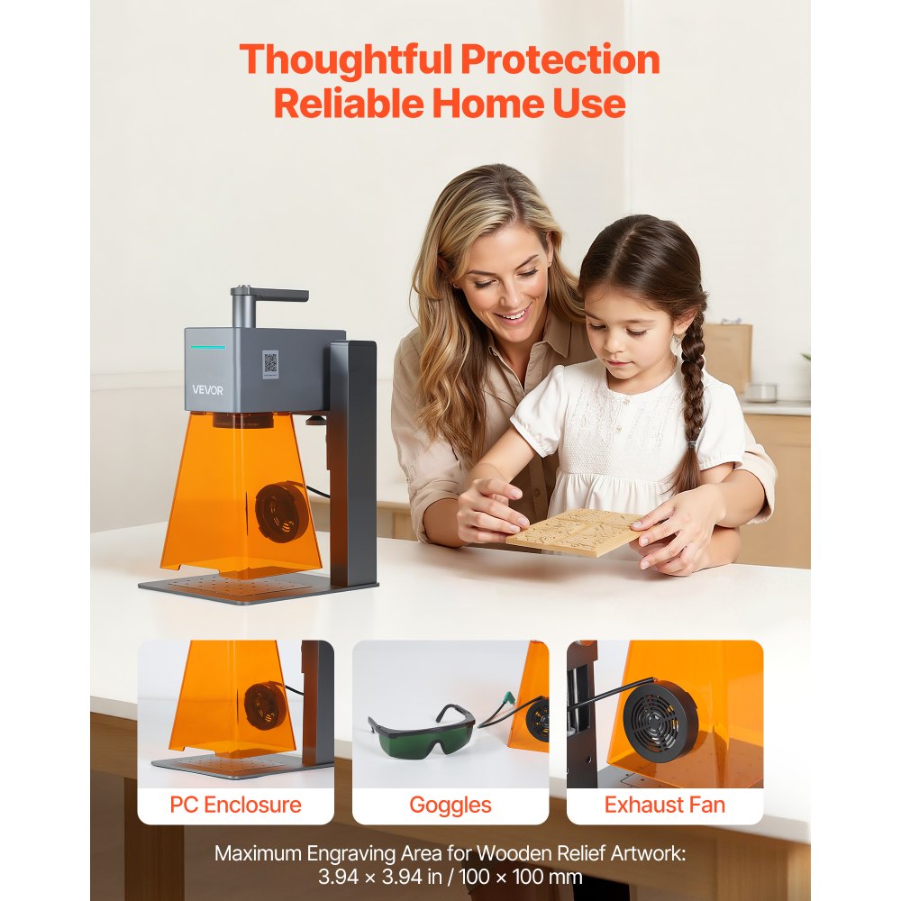 Amplia compatibilidad de materiales: Este grabador portátil de escritorio permite grabar en madera, acrílico, cuero, vidrio, goma, tela y materiales similares. Nota: Los materiales transparentes o reflectantes requieren una capa negra antes de grabar