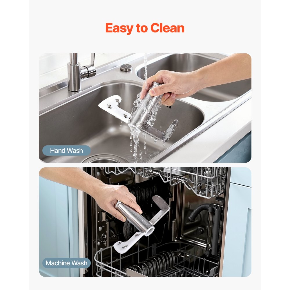 Construcción de acero inoxidable: La máquina de hielo duro está fabricada con un robusto cuerpo de acero inoxidable 201 y un cilindro de acero inoxidable 304 apto para uso alimentario. Desmonte y enjuague las piezas, y luego limpie la carcasa para mantenerla impecable y lista para usar