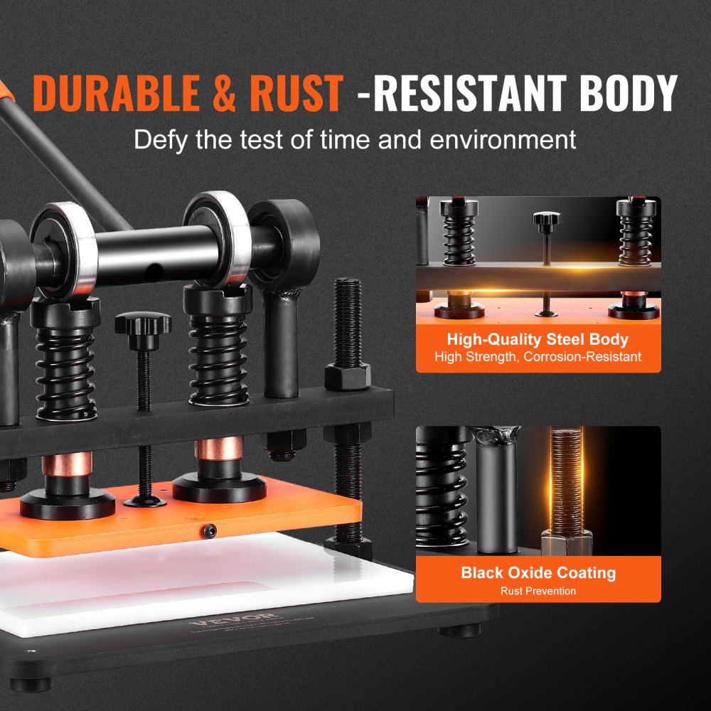 Construida para durar: Nuestra prensa de cuero manual está hecha de acero de alta calidad y recubierta con una capa de óxido negro para un uso duradero. Es resistente al óxido y la corrosión, lo que le permite adaptarse fácilmente a entornos hostiles.