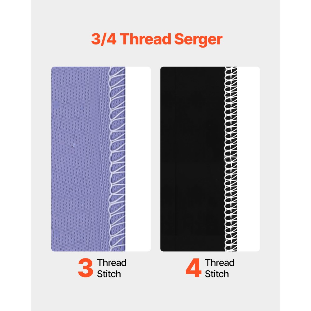 Función versátil de hilo 3/4: Nuestra máquina de coser overlock cuenta con una configuración flexible de hilo 3/4 con largo y ancho de puntada ajustables, ideal para reparaciones simples, acabado de bordes limpios y una variedad de tareas de costura