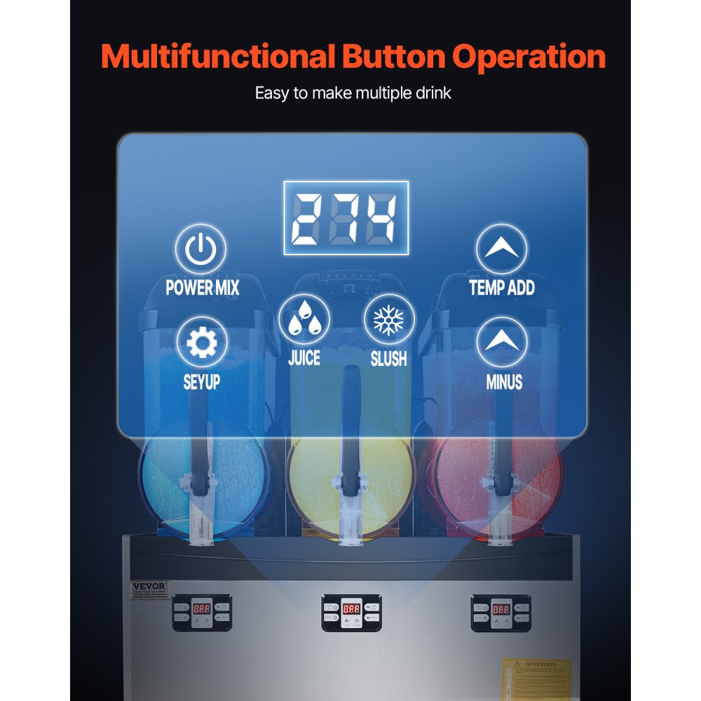 Máquina de Granizados Comercial con 3 Tanques de 12 L x 3 Máquina para Hacer Batidos de Acero Inoxidable 144 Tazas Máquina para Hacer Granizados para Fiestas en Hogar, Restaurantes, Bares - Tecnología